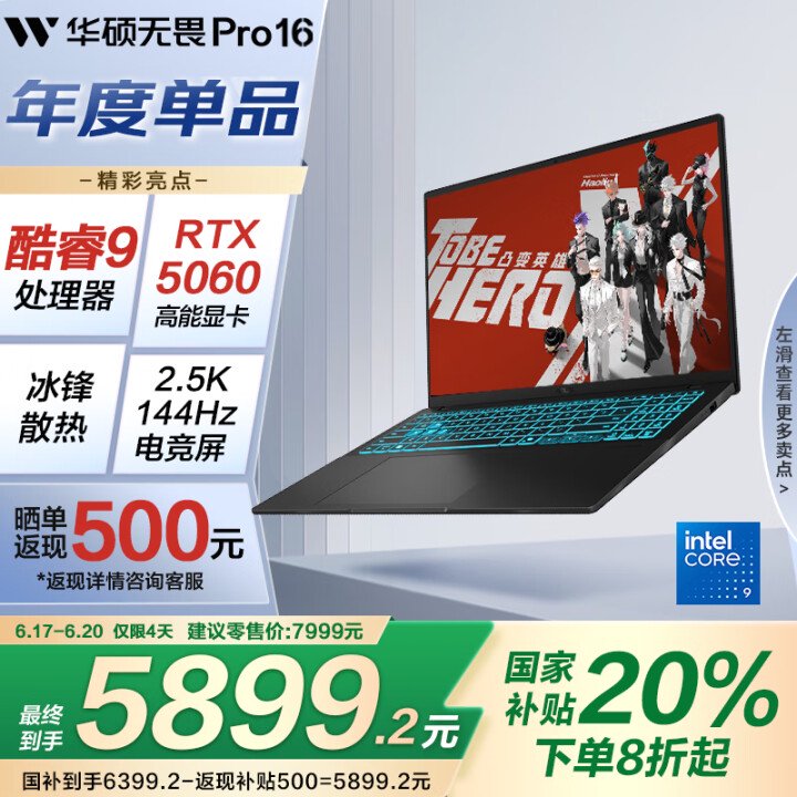 IT之家 5 月 31 日消息,华硕昨日推出了一款搭载全新英特尔酷睿 9 处理器和 RTX 5060 显卡的无畏 Pro16 2025 机型,叠加国补和 500 元返现后是 5899.2 元,6 月 17 日开售。