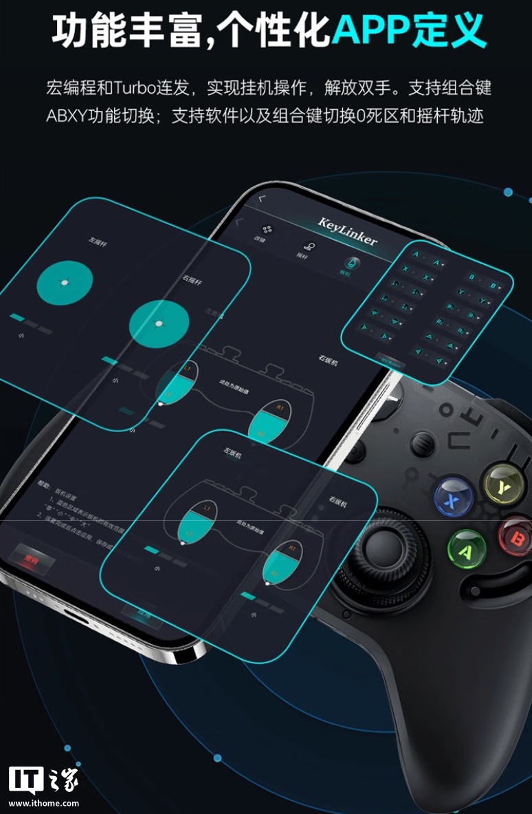 据介绍,雷神 G80 雷切双系统手柄配备独家自研“THUNDERSWAP”字符切换按钮,可一键切换 PC / NS 显示,按键映射也随之切换。手柄还拥有全新“力调节 TMR 青龙摇杆”,支持双擎振动、自适应音圈振动。官方还推出了手柄配套真无线环抱式 RGB 充电底座。