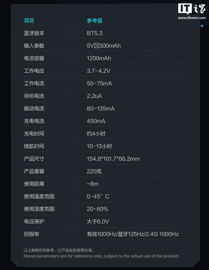 IT之家附雷神 G80 雷切双系统手柄规格参数如下: