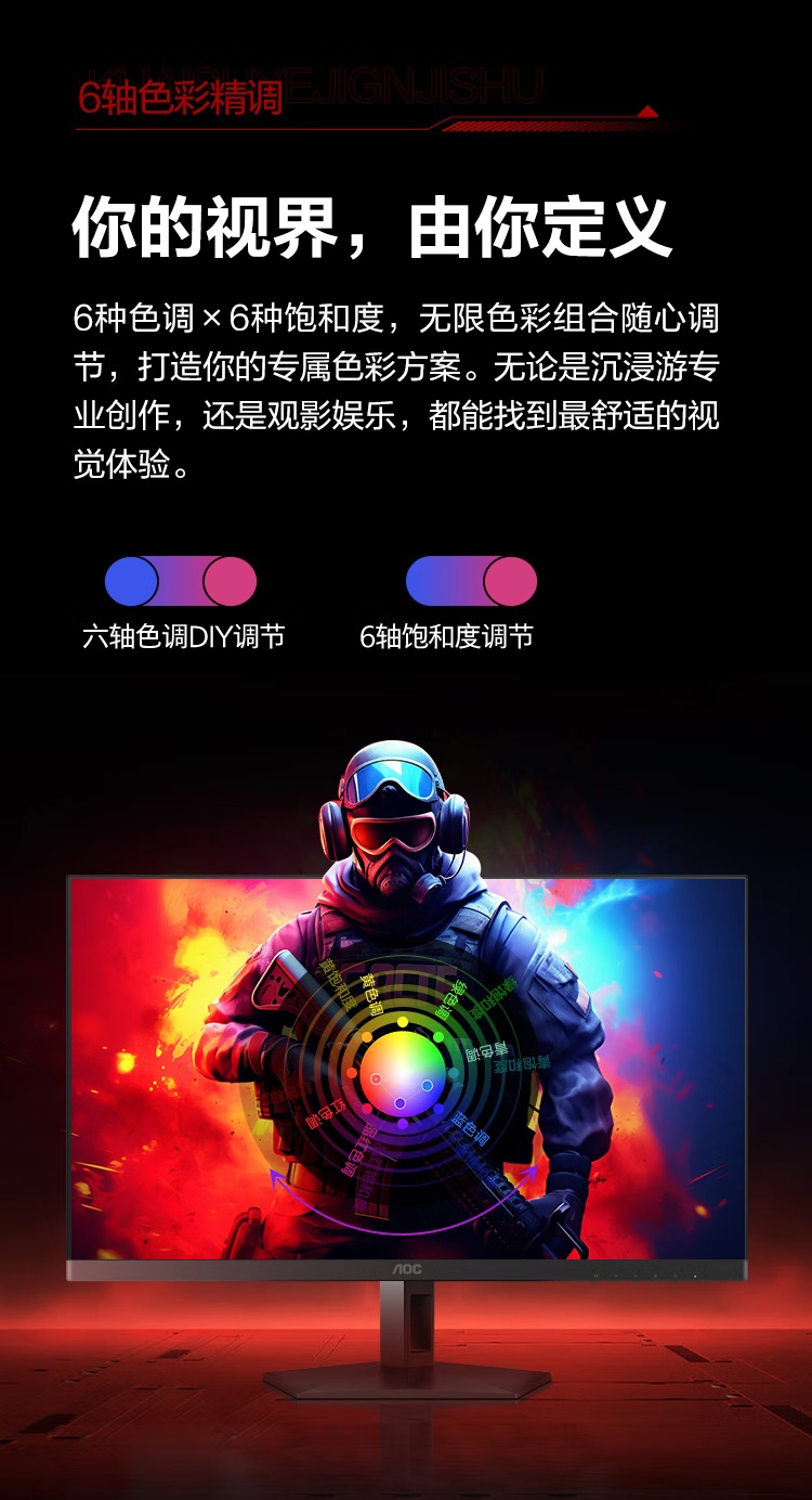 此外,其 GtG 响应时间为 0.3ms,静态对比度为 1,500,000:1,还支持 100% sRGB、99% DCI-P3 色域,色准 ΔE<2,通过 VESA DisplayHDR TureBlack 400 及 VESA ClearMR 13000 认证、莱茵 TÜV 低蓝光认证,支持 AdaptiveSync 自适应同步,支持 AI 动态辅助准星 + 狙击镜。