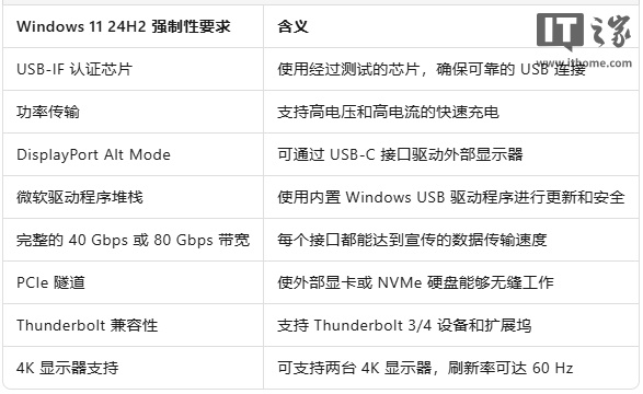 微软此次对 USB-C 接口要求的严格化令人欣慰。此前,这些功能均为可选项,部分 OEM 厂商遵循了“建议”,而另一些则没有,导致消费者购买的 USB-C 接口电脑未能达到预期效。Windows 11 24H2 终于将这些可选的 USB-C 功能变为强制要求。
