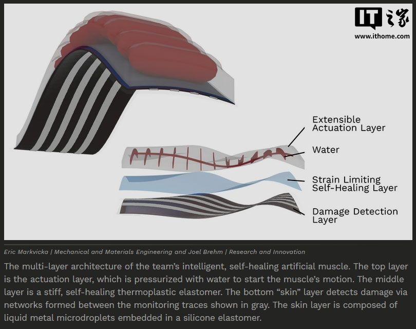 IT之家 6 月 2 日消息,美国内布拉斯加大学林肯分校的工程团队取得了一项突破性进展,成功开发出一种用于软体机器人和可穿戴系统的可自我修复的人造肌肉。该技术模拟了动植物感知损伤并自我修复的能力,被认为解决了合成系统长期存在的难题。