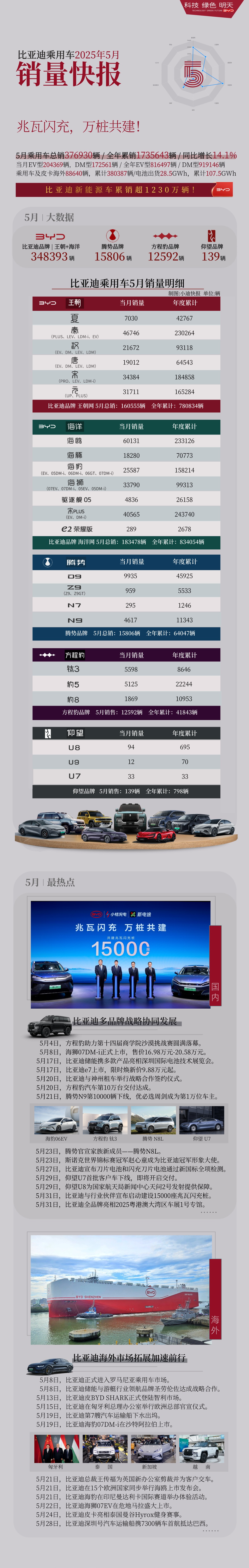 宋(PRO、LEV、LDM-i):5 月销量 34384 辆,今年累计 184858 辆