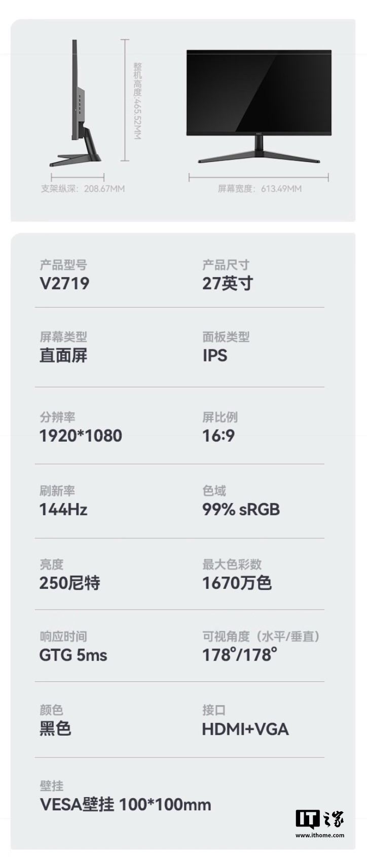 IT之家附显示器参数如下: