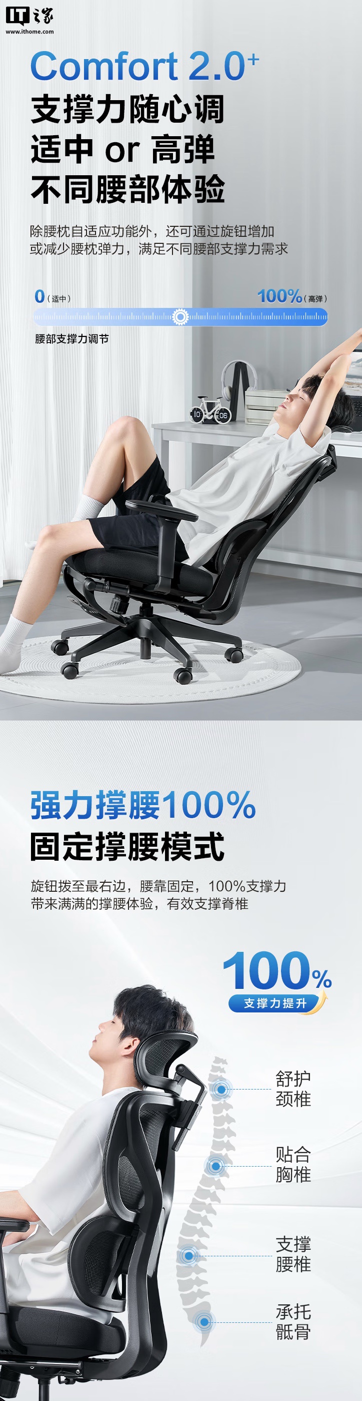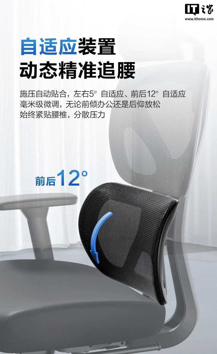 据介绍,这款人体工学椅配备变档弹力腰托,可实现“前后左右自适应追腰”,腰部弹力可通过旋纽调整力度,可调整至固定撑腰模式。