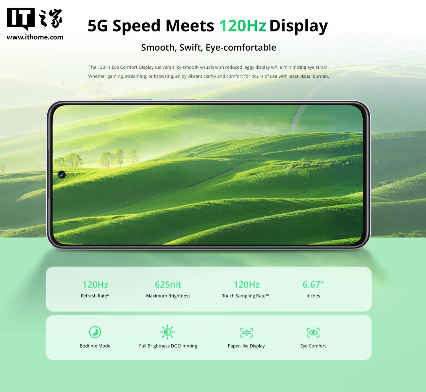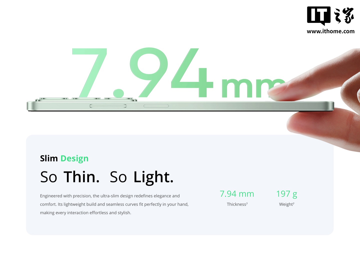 该机提供玉石绿、玛瑙黑和水晶紫三种配色,整体厚度 7.94mm,重量 197g,手机正面配备一块 1604x720 分辨率 120Hz IPS LCD 打孔面板(峰值亮度 625 尼特,静态对比度 1500:1,覆盖 83% NTSC 色域),背面采用 32MP 主摄 + 辅助摄像头。