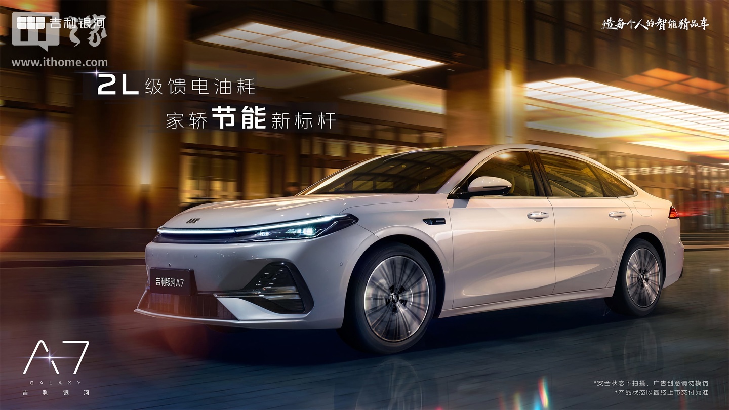 IT之家 6 月 3 日消息,吉利银河官方今日发布了旗下全新中型插电式混合动力轿车 —— 吉利银河 A7 EM-i 的官图。该车亏电油耗实现 2L 级别,综合续航超 2100km。