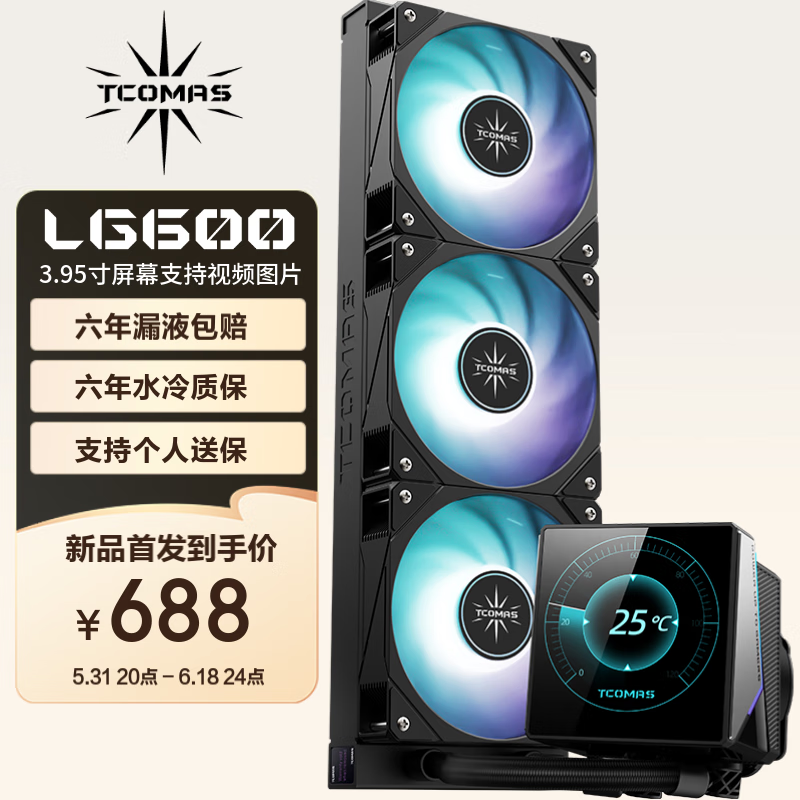 IT之家 6 月 3 日消息,钛钽 LG600 360 一体式水冷国行版现已在京东上架,该散热器水冷头配备磁吸彩屏,并搭载自家旗舰同款 X6M-P 水泵,可选黑白双色,定价均为 688 元。