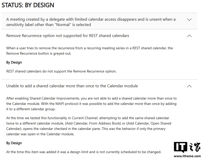 IT之家注意到,微软还列出了两项“不是问题的问题”,称开发团队就是故意这么设计的,而非不小心产生的新 Bug: