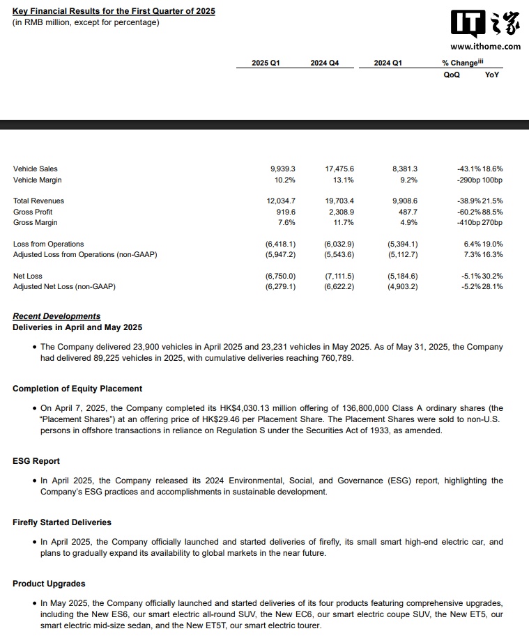 IT之家附蔚来 2025 年一季度财报解析: