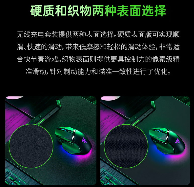 新品支持无缝自动配对功能,提供硬质和织物两种表面材质可选。同时,该套装还支持 RAZER HYPERSPEED 无线技术,可将兼容的鼠标和键盘同时连接至电脑,释放更多 USB 端口。