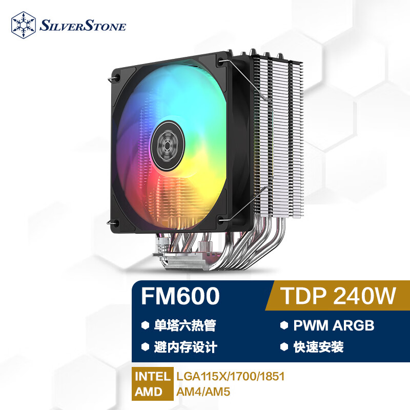 IT之家 6 月 5 日消息,银昕现已推出 FM600 风冷,根据历史产品命名规律全称应为 Frost Mage 600 ARGB。这款散热器采用单塔单风扇 6 热管直触结构设计,标称解热能力为 240W TDP,定价 98 元。