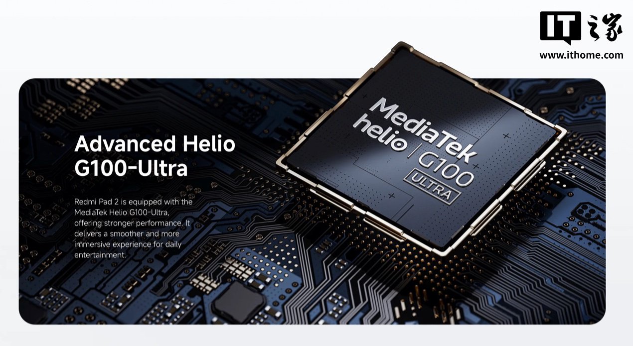 IT之家 6 月 6 日消息,小米昨日于海外发布了 REDMI Pad 2 平板,该平板搭载联发科 Helio G100 Ultra 芯片,内置 11 寸 90Hz 屏幕,售 199 欧元起。