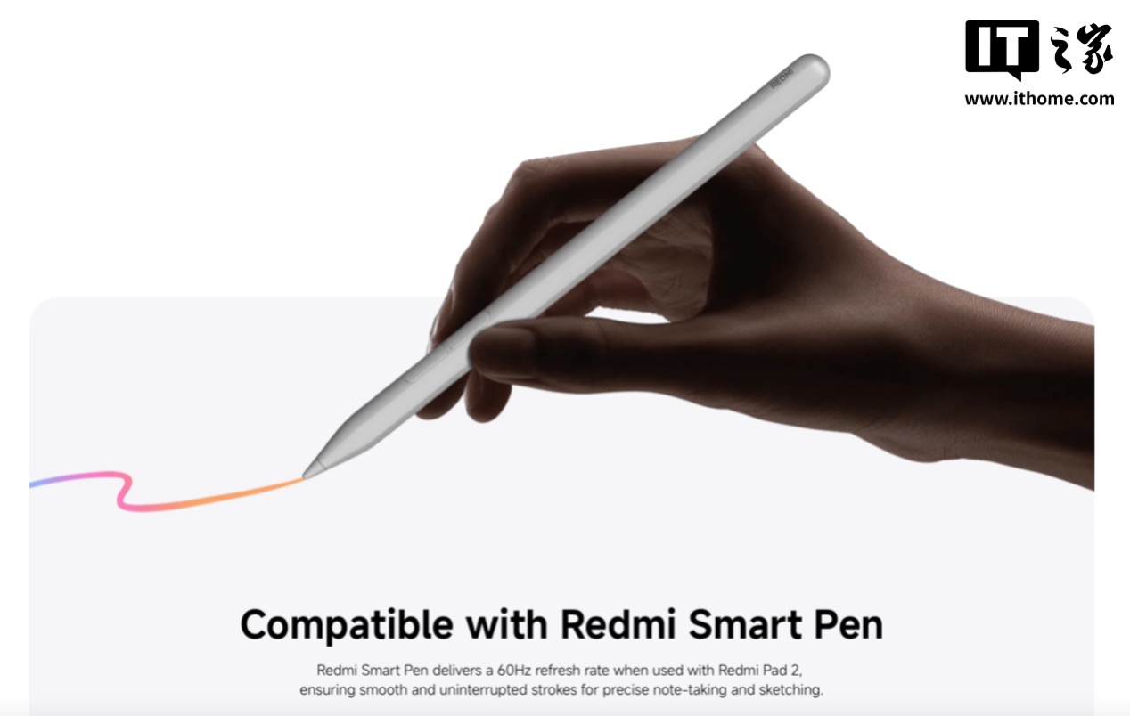 该平板还支持 REDMI Smart Pen 手写笔,可为笔记、绘画等场景带来流畅体验。