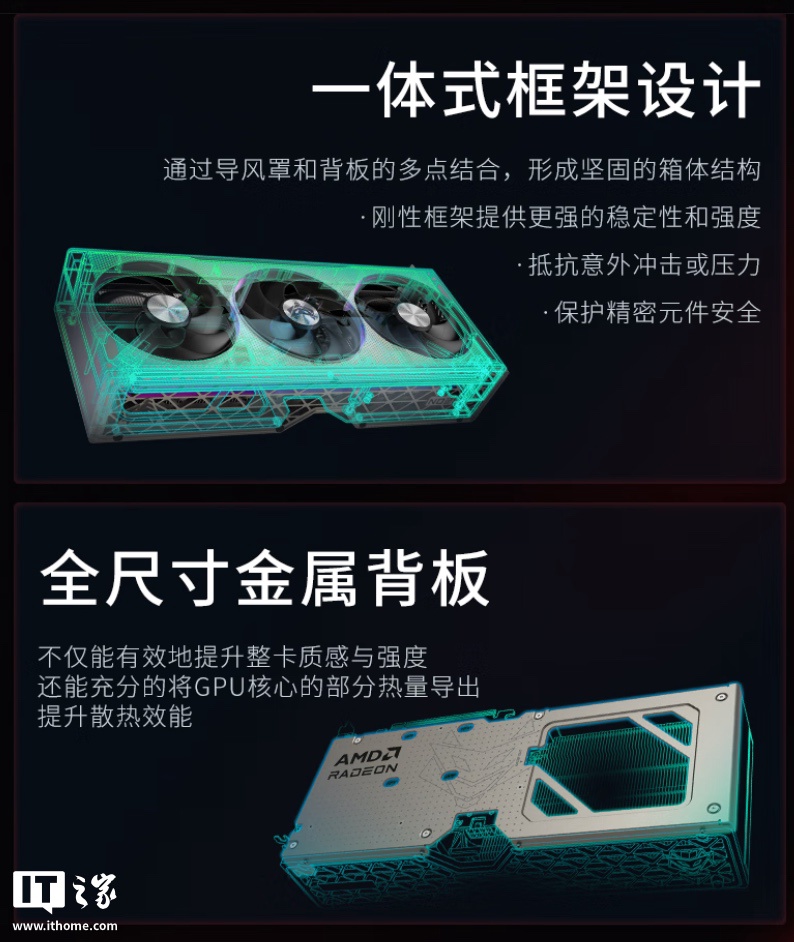 据蓝宝石介绍,该显卡基于 AMD RDNA 4 架构打造,拥有 32 个计算单元和 2048 个流处理器,集成 32MB AMD 高速缓存,加速频率可达 3320MHz(公版加速频率为 3230MHz);内置两个 HDMI 2.1 和一个 DisplayPort 2.1a 接口,兼容多种显示设备。