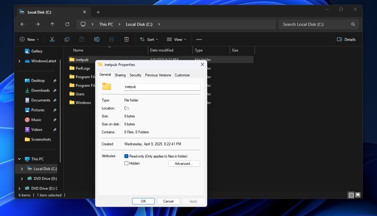 IT之家此前报道,Windows 11、Windows 10 用户在安装 4 月累积更新 KB5055523 后,系统 C 盘出现了名为“inetpub”的空文件夹,大小为 0 字节。