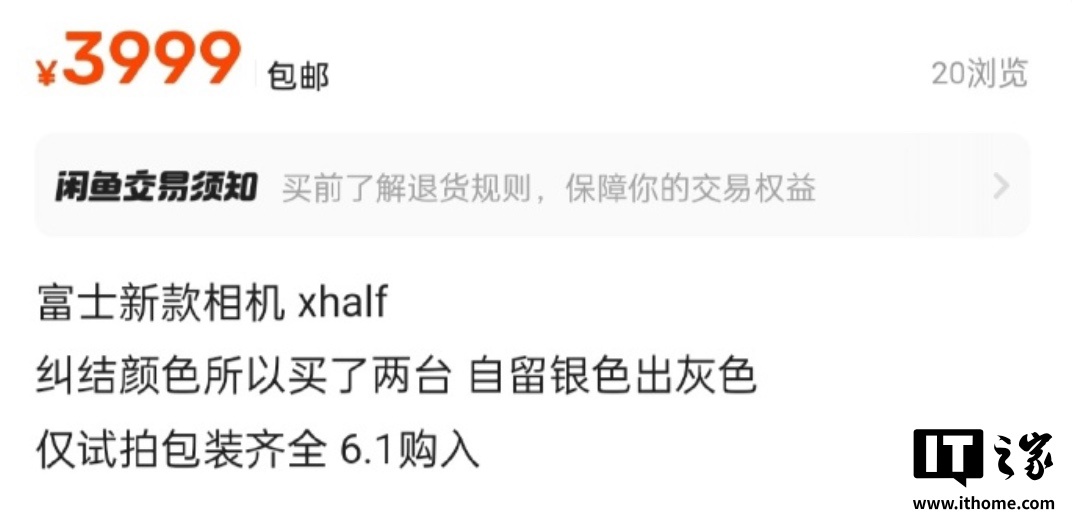 而在二手平台上,该机均价约 4300-4500 元(约 8.5-9 折),部分用户已挂出低于 4000 的价格(约 8 折),作为比较,富士近期上市的多数相机产品上市 2-3 个月后,国行基本仍处于加价状态。