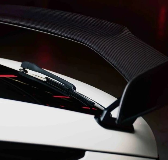 车身侧面依然采用了溜背式造型,搭配鲨鱼鳍带来了比较强的运动感。车尾排气管采用的是中置三出布局,搭配碳纤维尾翼。