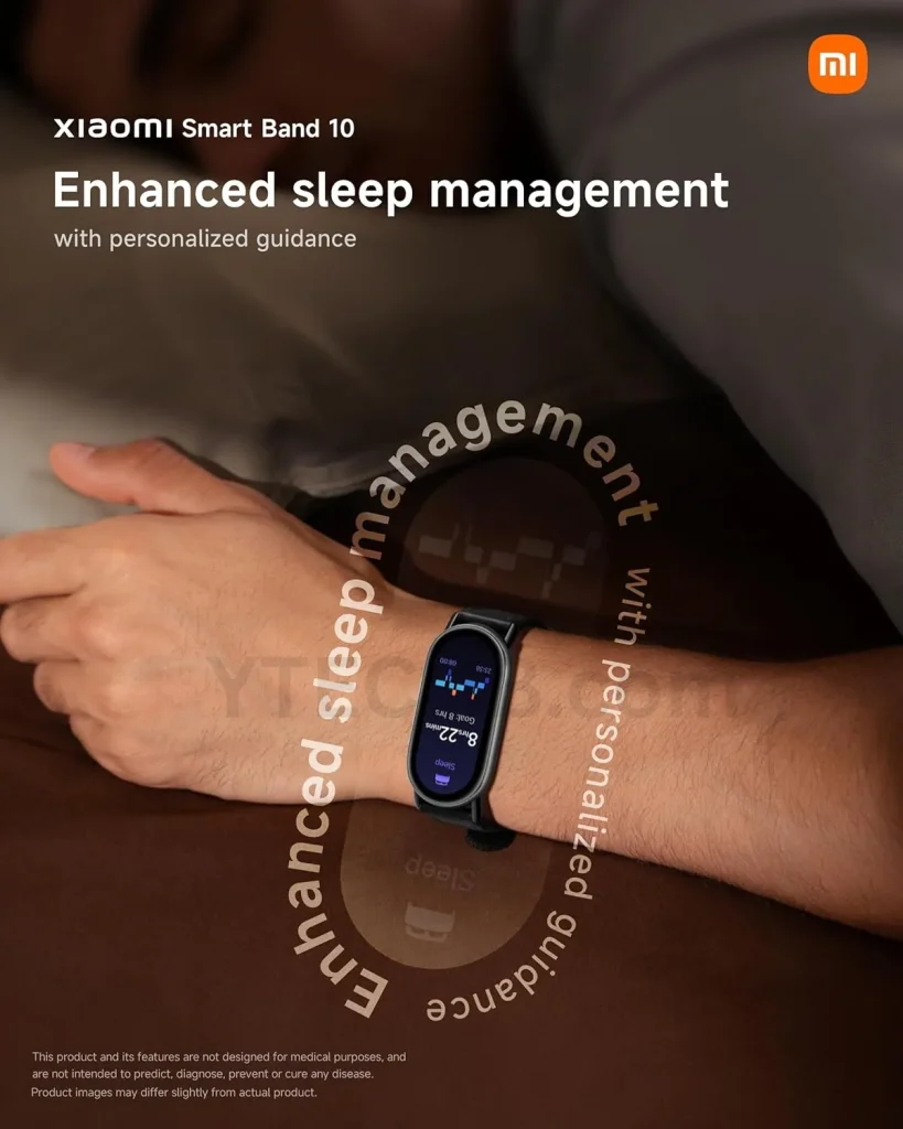 IT之家 6 月 9 日消息,海外媒体 YTECHB 上周曝光了小米手环 10 的宣传图,该手环将配备 1.72 英寸 OLED 屏幕,支持 150 + 种运动模式。