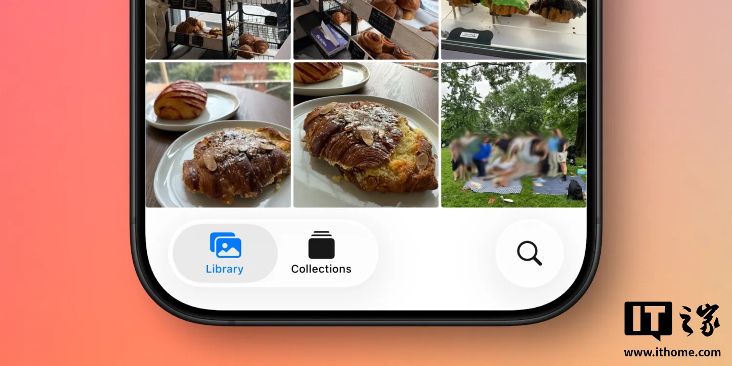 然而IT之家注意到,随着 iOS 26 的首个测试版发布,照片应用的界面设计再次发生了重大变化。苹果重新引入了标签栏,将界面分为“Library”(库)和“Collections”(收藏)两个主要标签。此外,搜索图标也被放置在这两个标签的右侧,方便用户快速查找照片。