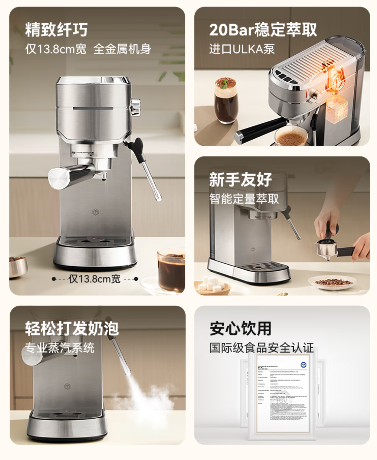 强劲蒸汽,轻松打发奶泡,更好拉花。