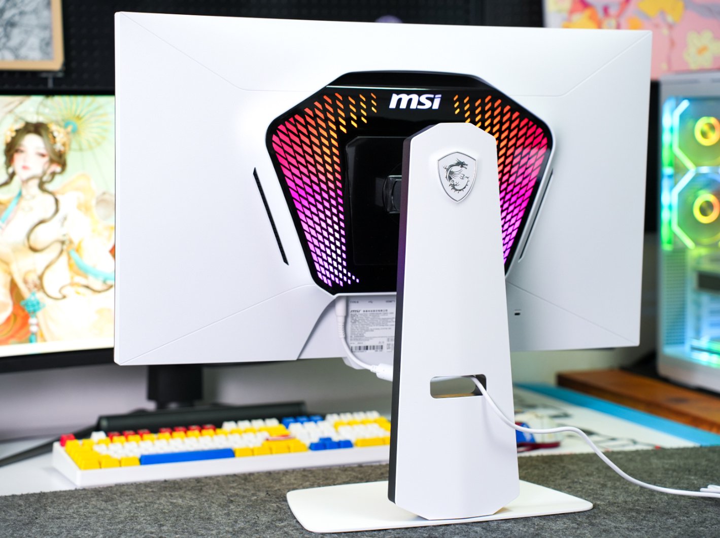 这款显示器还带有全新白色设计,配备 44 个 LED 灯珠,支持 Mystic Light 定制 RGB 效果,并获得 Windows Dynamic Lighting 认证,能够与其他游戏外设同步灯光效果。