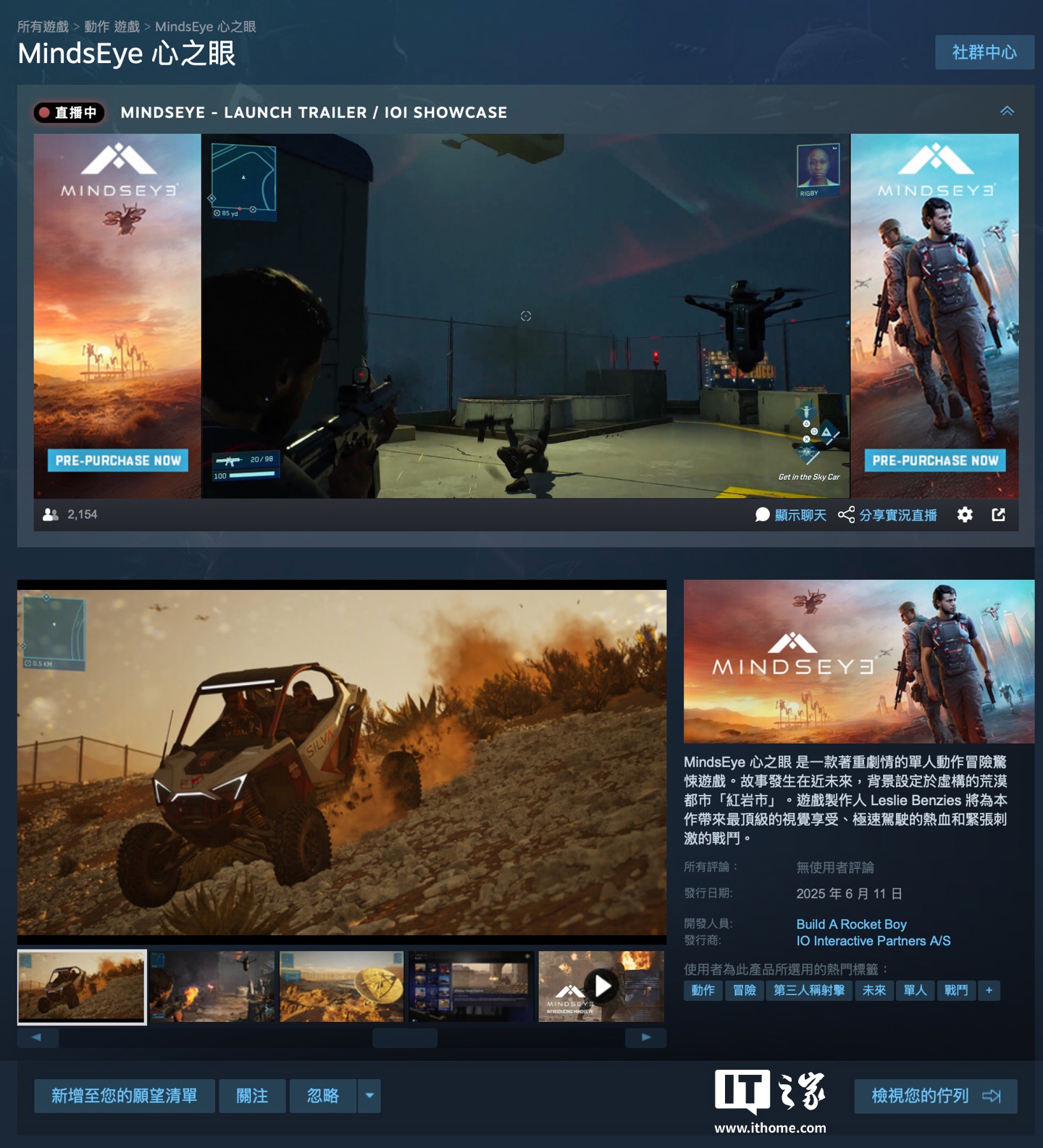 IT之家 6 月 10 日消息,R 星前核心人物 Leslie Benzies 旗下全新动作冒险游戏《心之眼(MindsEye)》将于明天 0 点解锁,本作在 Steam 国区定价为 198 元,支持简繁中文,IT之家附 Steam 商品页。