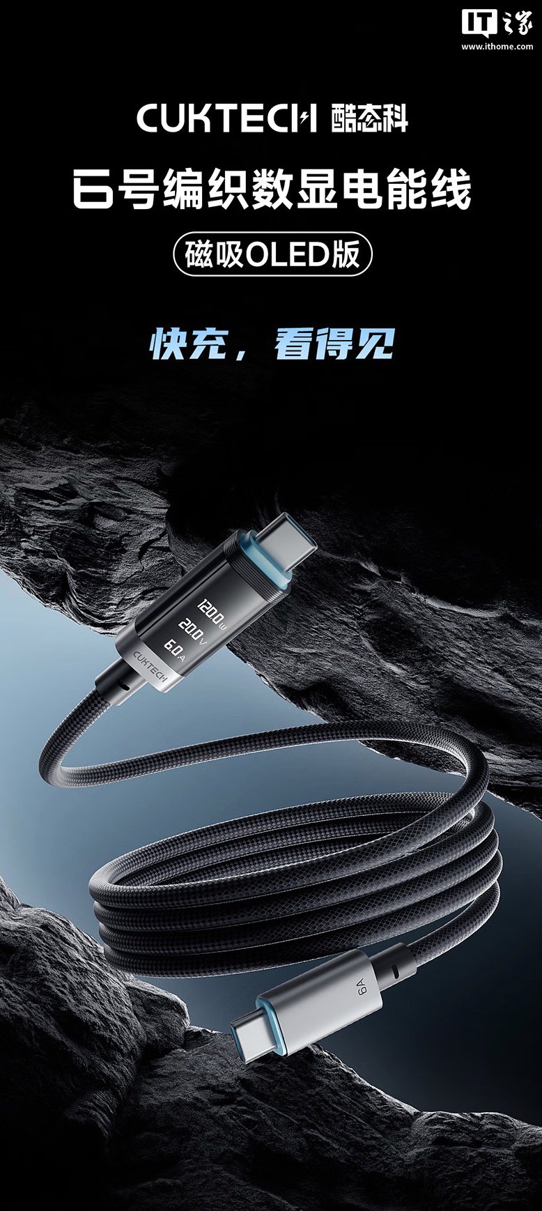 酷态科旗下 6 号编织数显电能线“磁吸 OLED 版”(充电线)现已在京东开售,首发 9 折 + PLUS 9 折实付 70.76 元即可入手,部分地区国补后低至 60 元。