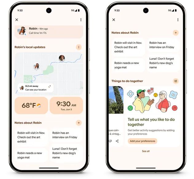 本次更新最大的亮点,就是为 Pixel 系列智能手机,推出独占 Pixel VIPs 小部件,让你与最重要的人保持联系。通过通讯录应用,用户可以为亲朋好友添加生日、邮箱、家庭地址等详细信息,查看最近通话和消息记录(包括 WhatsApp),甚至在他们分享位置时获取实时位置信息。