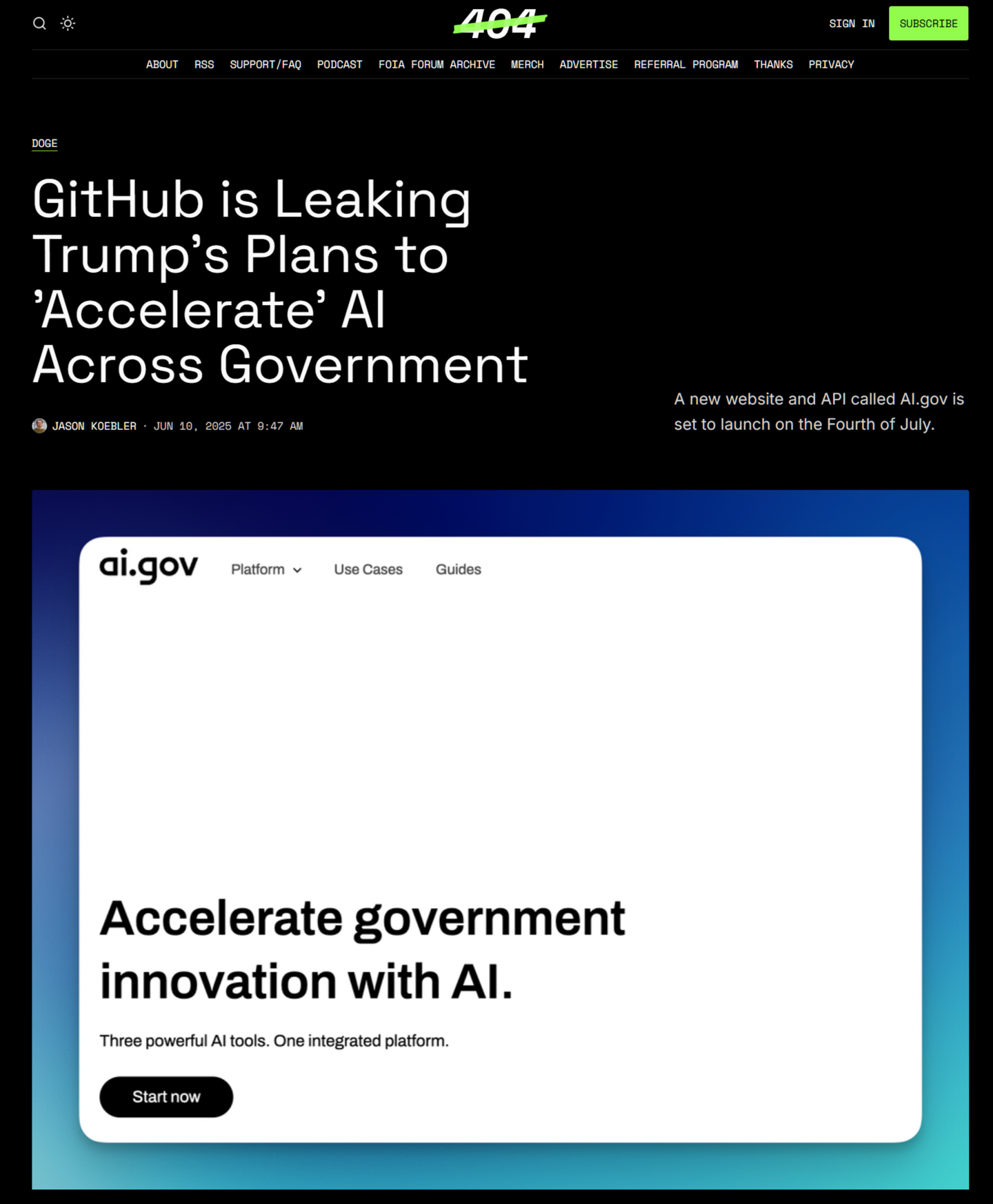 IT之家 6 月 11 日消息,据外媒 404 Media 10 日披露,根据 GitHub 上的代码和 AI.gov 网站的早期版本,美国政府正推进一个名为“AI.gov”的平台和 API 服务,旨在通过 AI 推动政府创新。