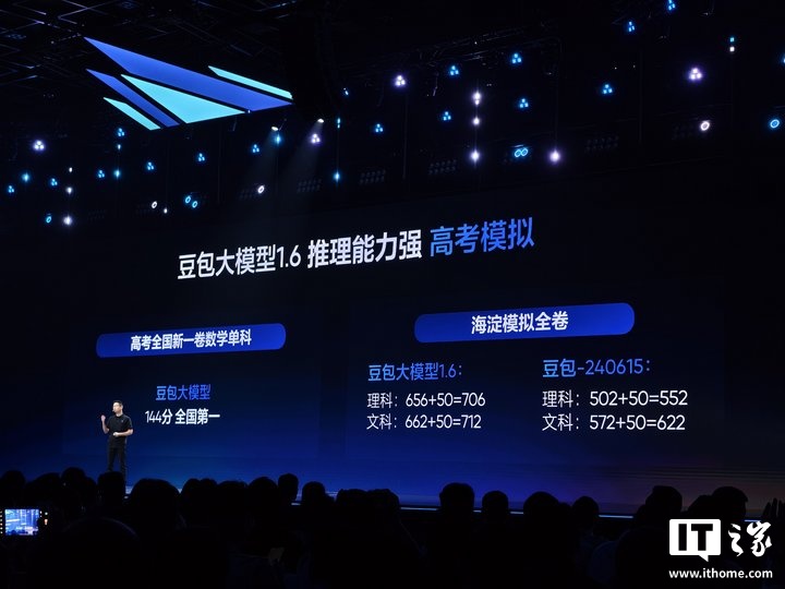 据火山引擎总裁谭待介绍,豆包大模型 1.6 包括三个大模型,分别是 Doubao-Seed-1.6-thinking、Doubao-Seed-1.6、Doubao-Seed-1.6-flash,均支持多模态输入,并实现 256K 超长上下文。以 thinking 模型为例,其思考能力强化,支持多模态,Doubao-Seed-1.6 则可以支持 on / off / auto 三种思考模式,以高考全国新一卷数学为例,豆包大模型取得了 144 分,在大模型中居全国第一。在海淀模拟全卷考试中,理科拿下 706 分,文科考了 712 分。