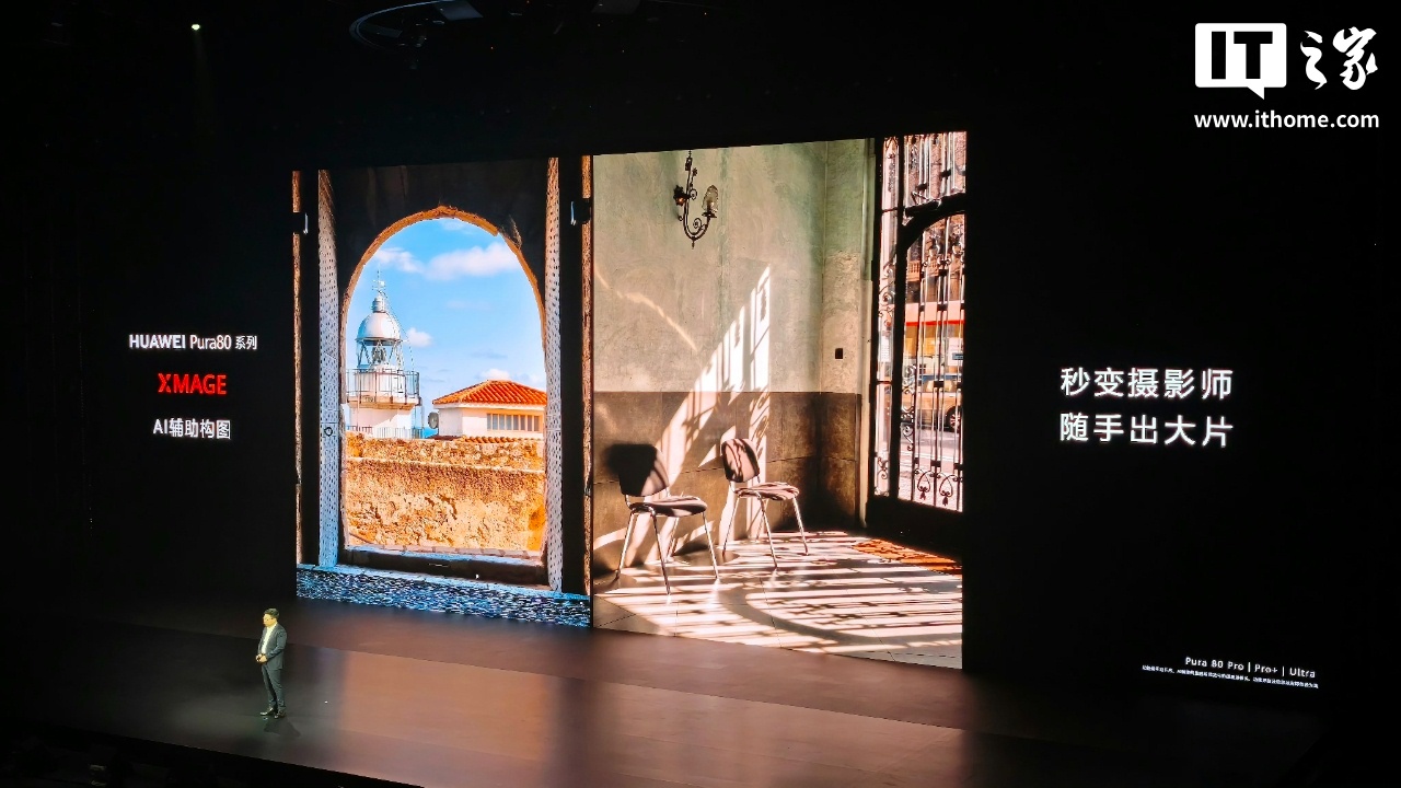 华为 XMAGE 色彩再升级,华为 Pura80 系列首发华为相机个性色卡功能,拍前拍后色卡参数都可调整,一共有电影、动漫、胶片、自然四种风格;此外,还支持 AI 辅助构图推荐、AI 反光消除、超清全景模式功能。