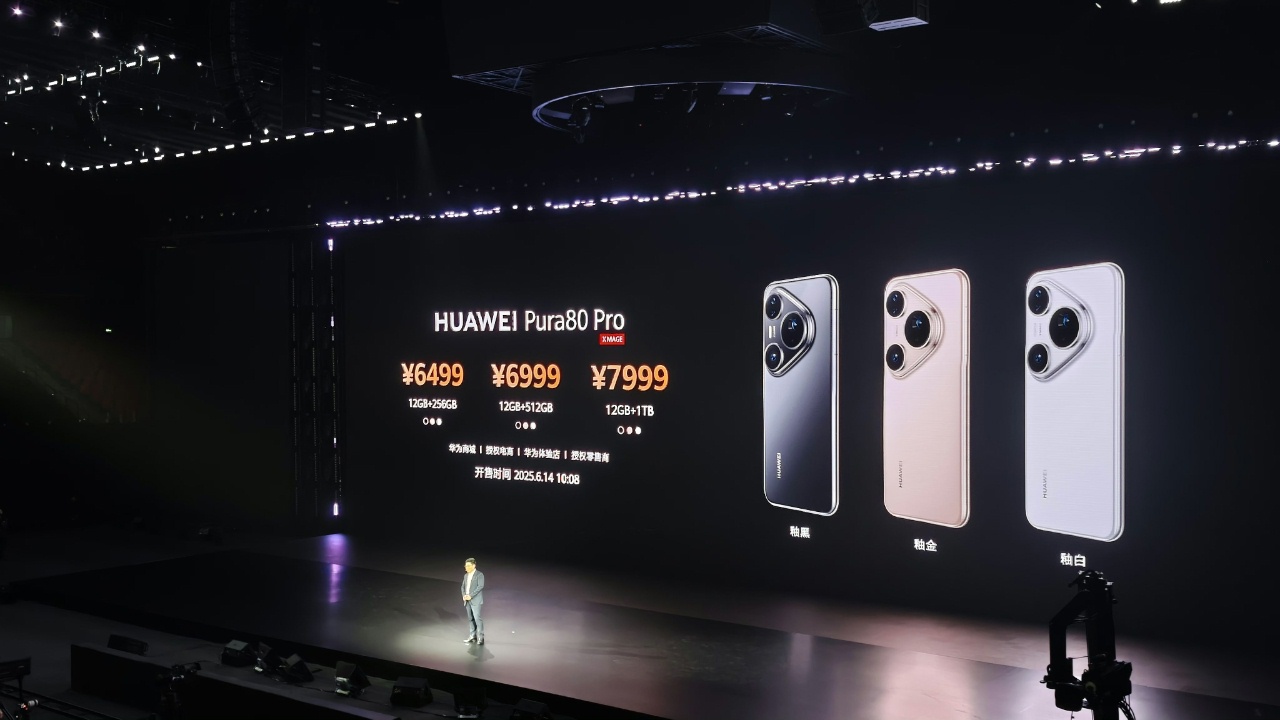华为 Pura80 Pro 和 Pro + 将于 6 月 14 日 10:08 开售,Pura80 Ultra 将于 6 月 26 日 10:08 开售,Pura80 将于 7 月开售,Pura80 Pro 起售价 6499 元,Pura80 Pro+ 起售价 7999 元,Pura80 Ultra 起售价 9999 元,具体售价如下: