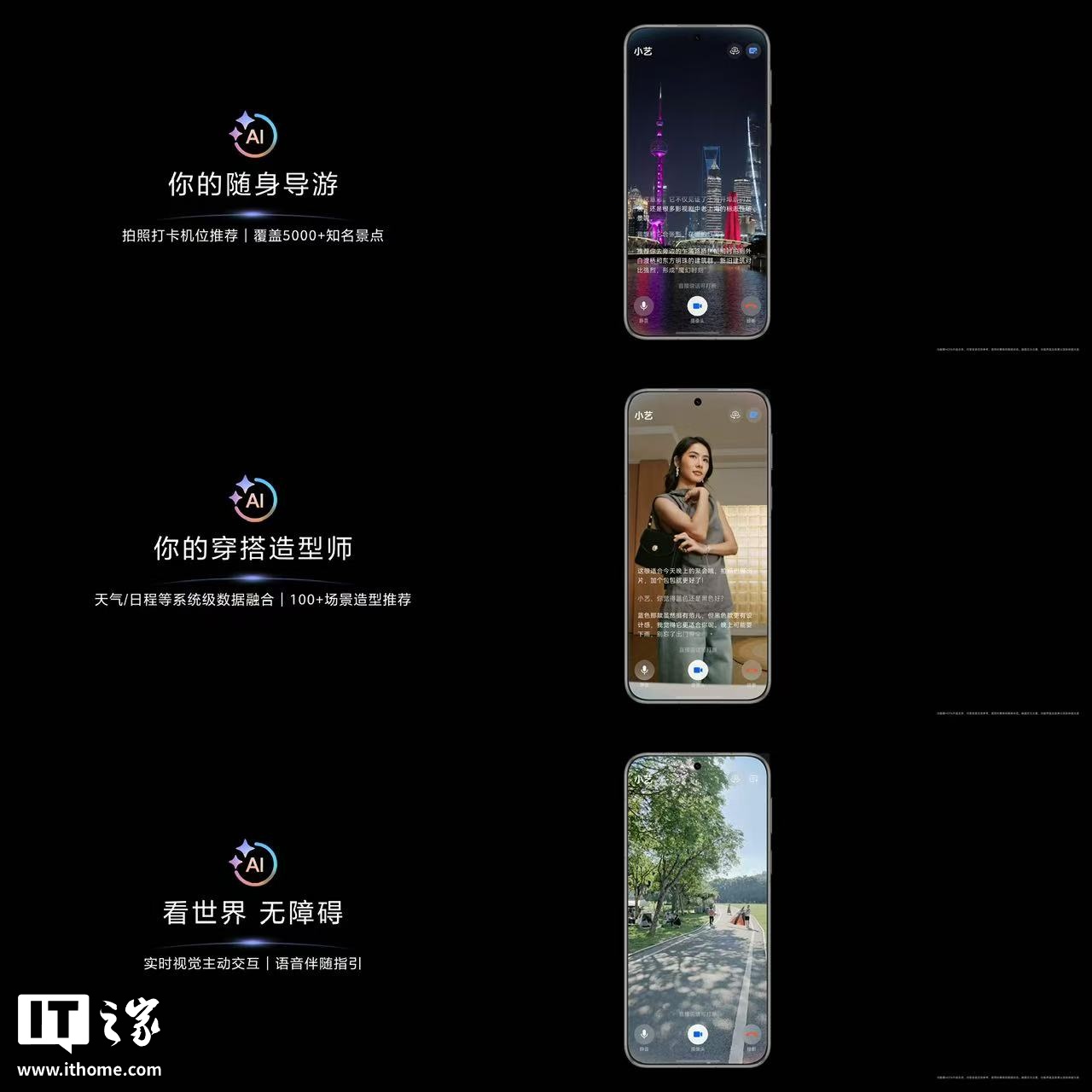 IT之家从发布会现场获悉,华为 Pura 80 系列手机还内置全新升级的小艺助手,号称随时随地陪你看世界,支持边看边聊边思考,可充当随身导游、穿搭造型师。另外,全新小艺还支持实时视觉主动交互,可提供语音伴随指引。