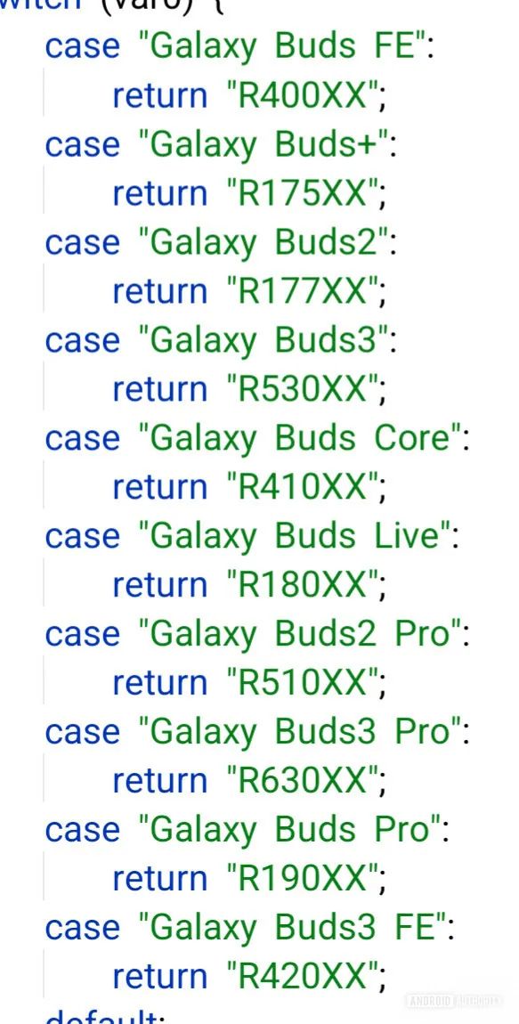 代码中还出现了 Galaxy Buds3 FE(型号 SM-R420),表明继任耳机将跳过“2”,直接进入“3”。
