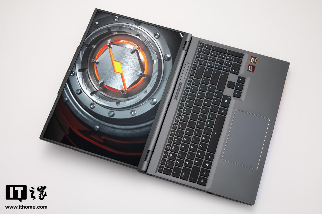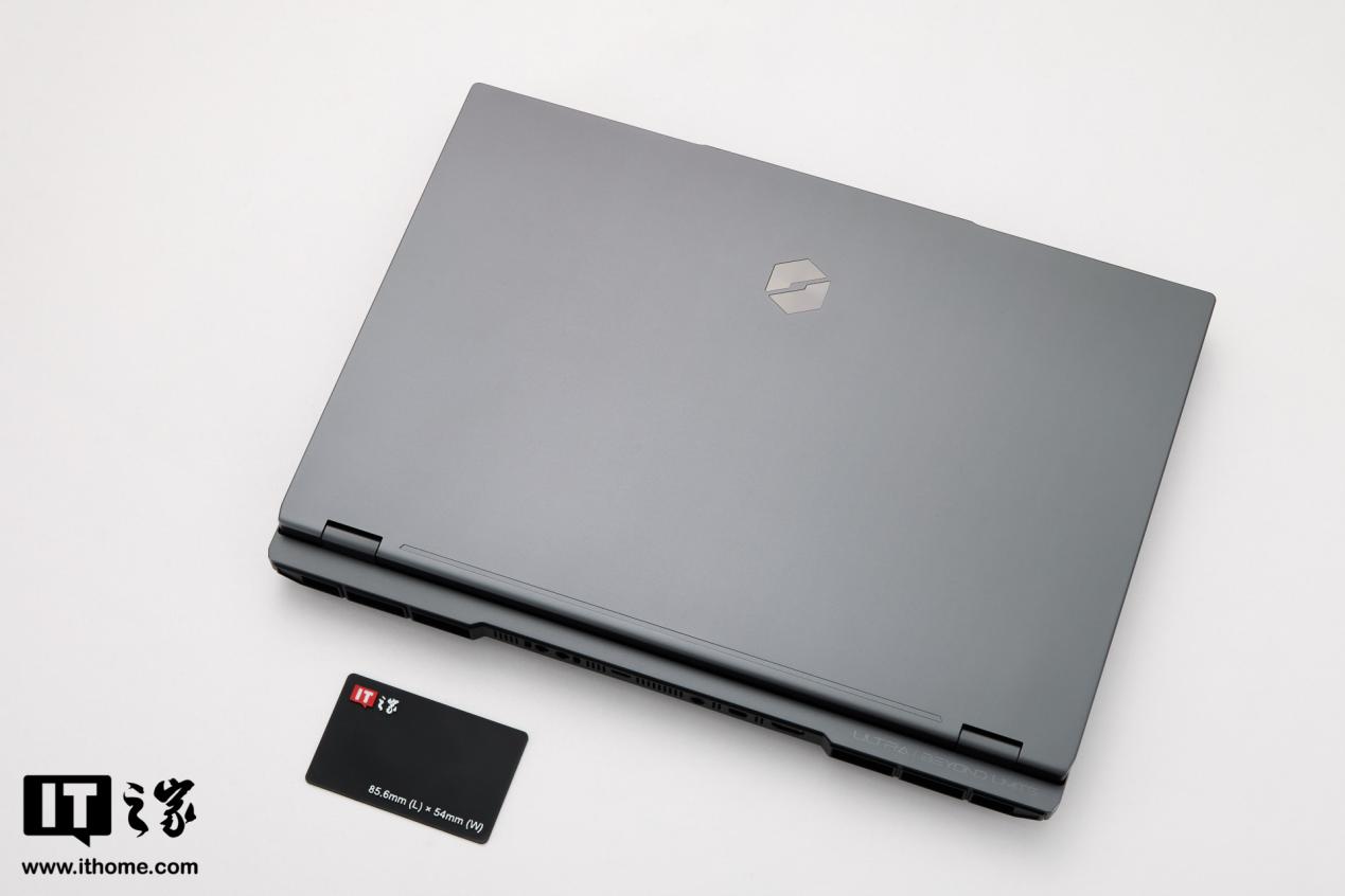 打开包装后看到笔记本本体,全新苍龙 16 Ultra 采用全金属机身,IT之家拿到的这台为暮石灰配色,搭配机身表面细腻的喷砂,在不同光线的照射下有时候会接近黑色,整体看起来十分低调凝练。