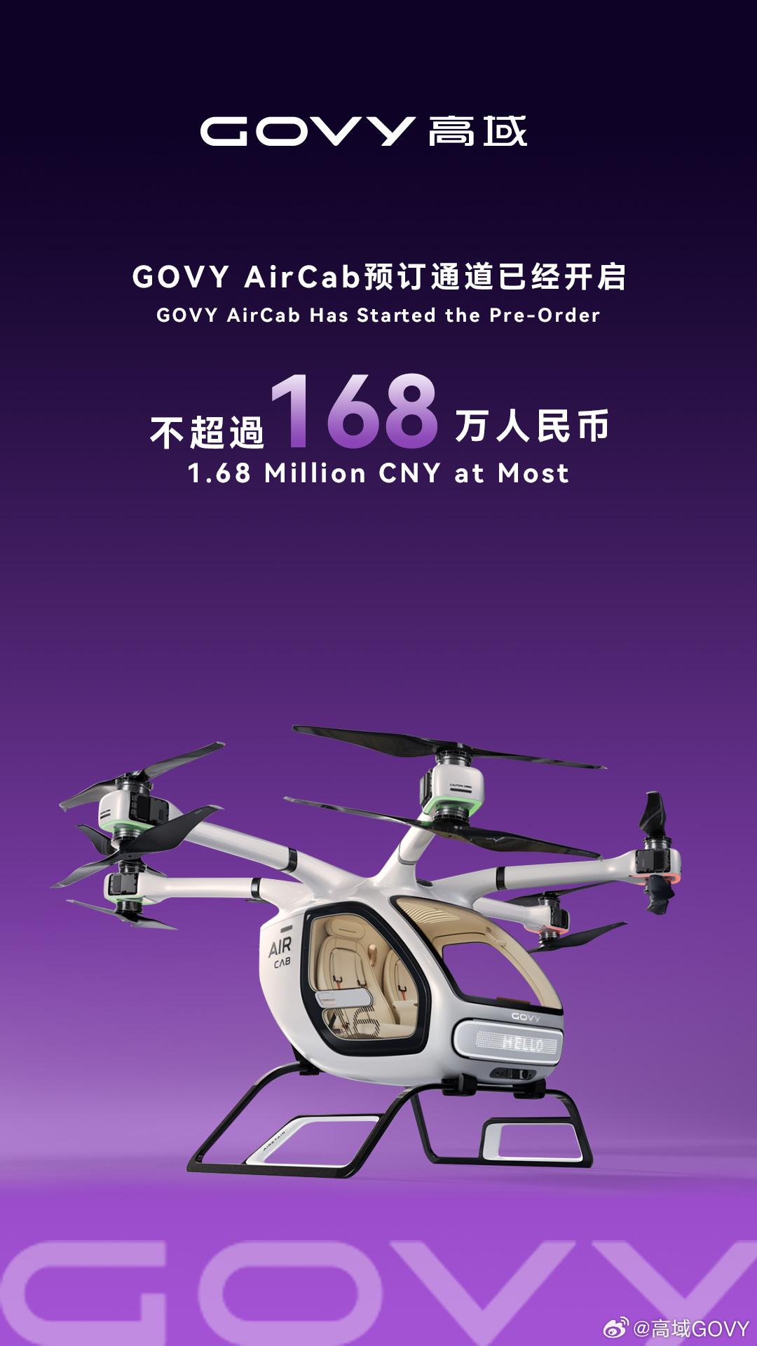 IT之家 6 月 12 日消息,广汽集团首款量产飞行汽车 GOVE(高域)AirCab 今日在香港全球首发并开启预订,官方指导价不超过 168 万元。