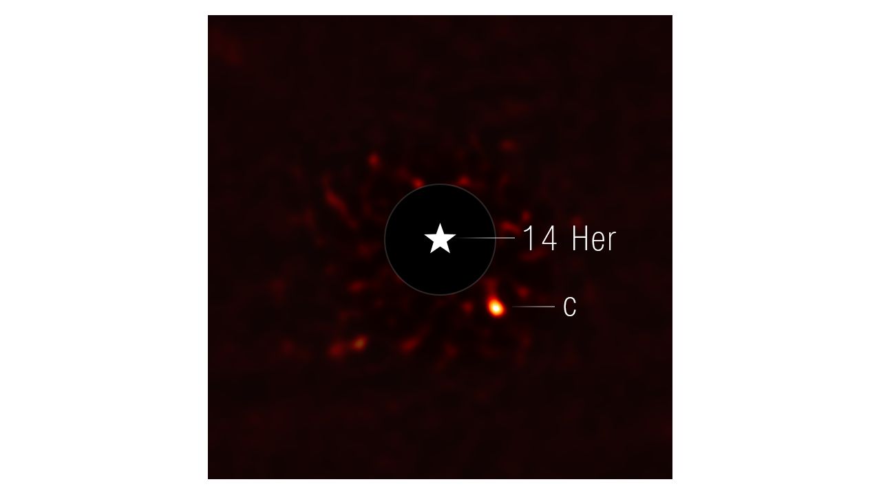 从观测的结果来看,14 Herculis 系统展现出与众不同的特征。中心恒星 14 Herculis 与太阳相似,但质量稍小、温度略低。