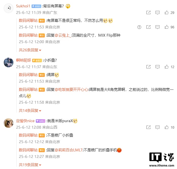 该博主还在评论区进一步透露这款新机不是小米的折叠手机,并给出了“阔屏”的提示。他还表示:“有屏幕不是很正常吗,不然怎么用”“顶满的全尺寸,MIX Flip 那种”,给了网友更多的想象空间。