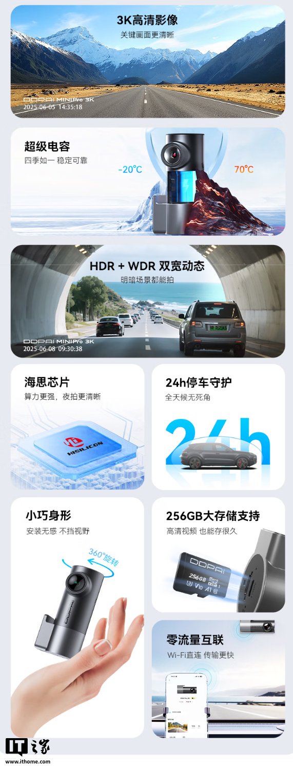 IT之家 6 月 13 日消息,盯盯拍今日发布 MINI Pro 3K 行车记录仪,预售价 199 元起,京东评价到手价 159 元起,6 月 17 日 20 点付尾款。