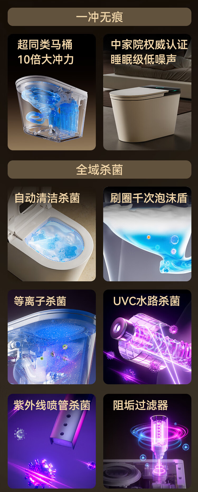 京东京造黑鲸 Ultra 智能马桶现已开启大促,较上代主要升级点为冲力远超同类马桶 10 倍 + 超静音冲水。