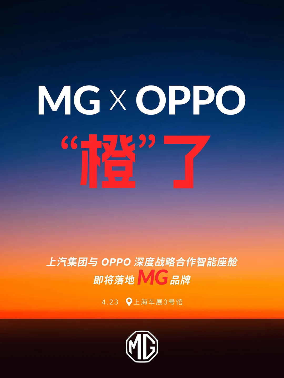 IT之家 6 月 27 日消息,上汽集团官方宣布,MG 与 OPPO 智行将于 6 月 30 日发布双方在车机互联领域的最新成果,为用户带来持续迭代的智能交互体验。