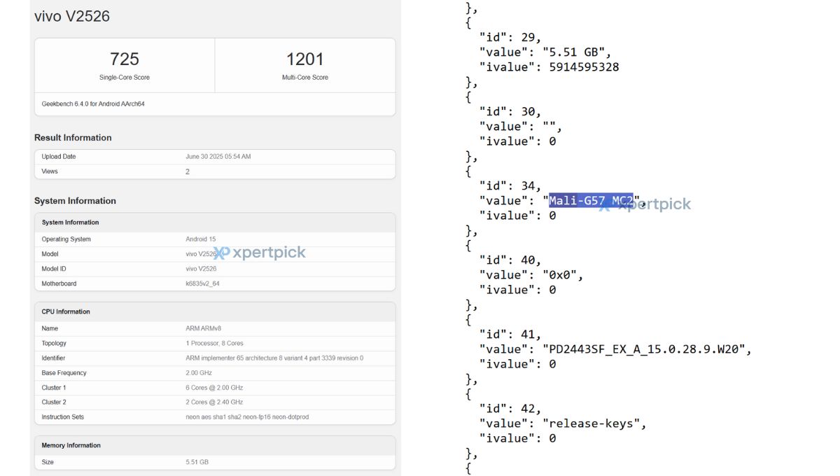IT之家 7 月 1 日消息,科技媒体 xpertpick 昨日(6 月 30 日)发布博文,报道称型号为 V2526 的手机现身 GeekBench 跑分库,6.4.0 版本单核成绩为 725 分,多核成绩为 1201 分。