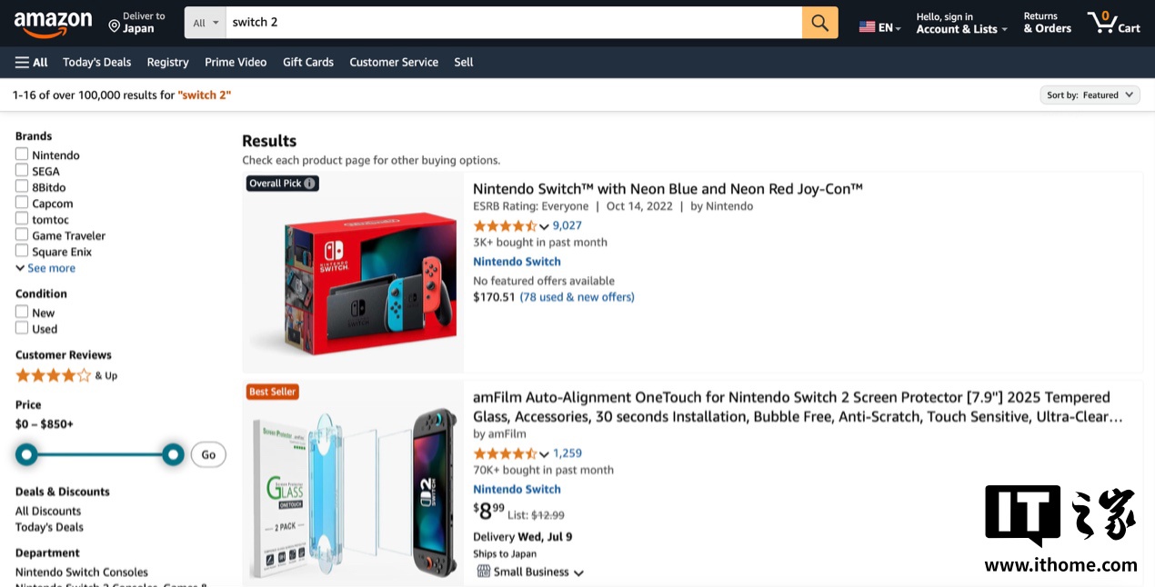 截至IT之家发稿,任天堂 Switch 2 游戏机本体仍未在美国亚马逊上架。