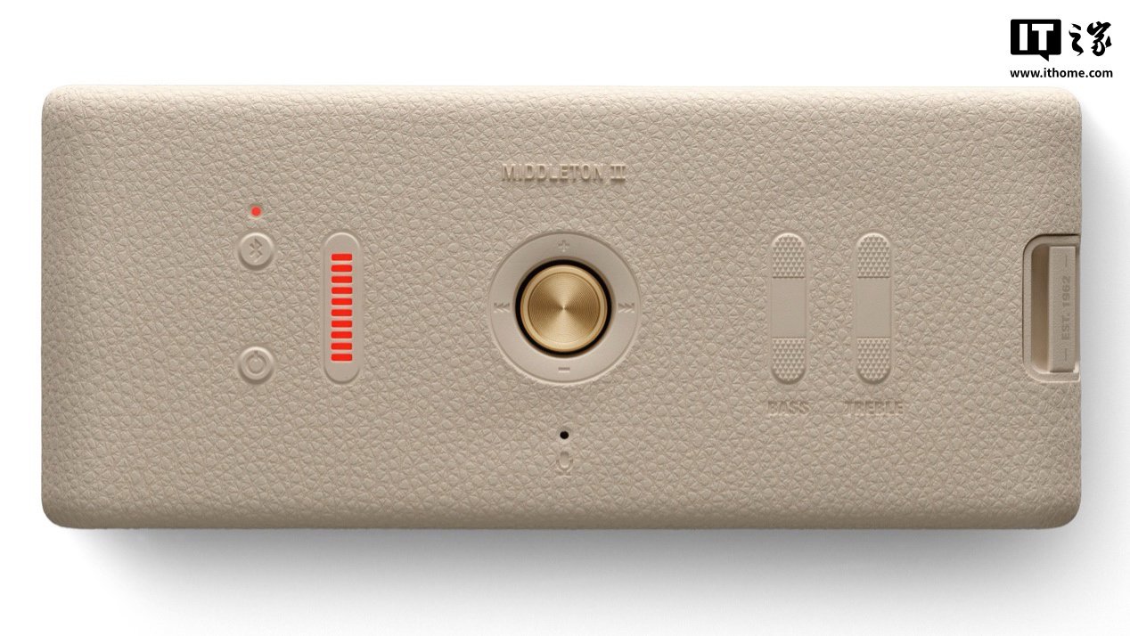 IT之家 7 月 1 日消息,马歇尔今日推出了 Middleton II 蓝牙音箱,该音箱主打经典设计、重低音,搭载多功能旋钮,支持 IP67 防尘防水。