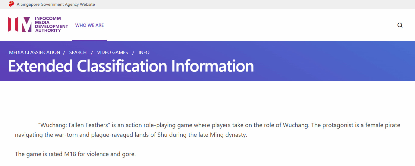 IT之家 7 月 2 日消息,国产动作游戏《明末:渊虚之羽》昨日通过新加坡分级机构评级,将于 7 月 24 日正式发售。