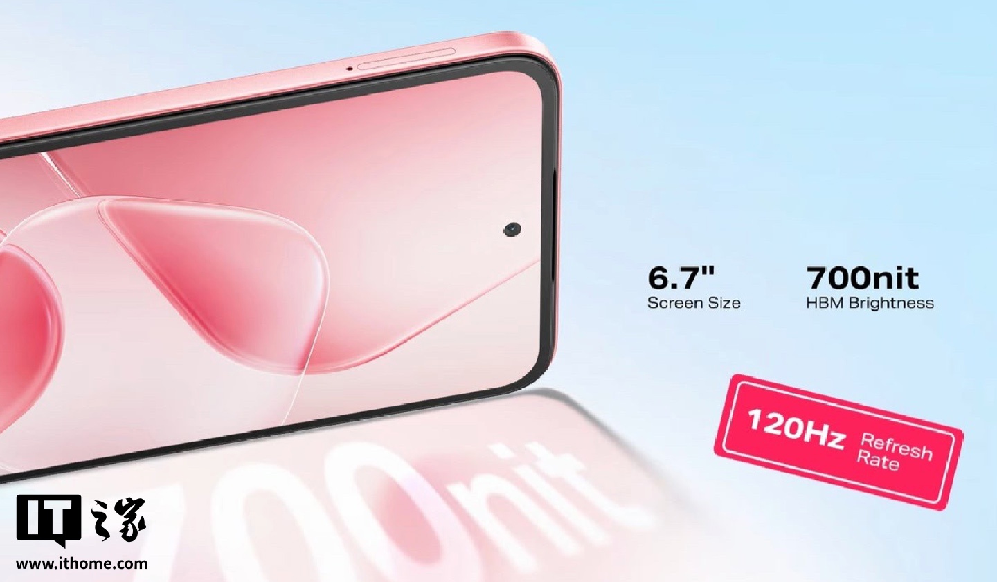 该机正面配备一块 6.7 英寸 720P 120Hz IPS LCD 打孔面板(亮度 700 尼特),带有 8MP 自拍摄像头。手机重量 188 克,厚度 7.7 毫米,配备垂直边框,官方称手机四角得到强化,可承受 1.5 米跌落。手机背面配备 50MP 摄像头。