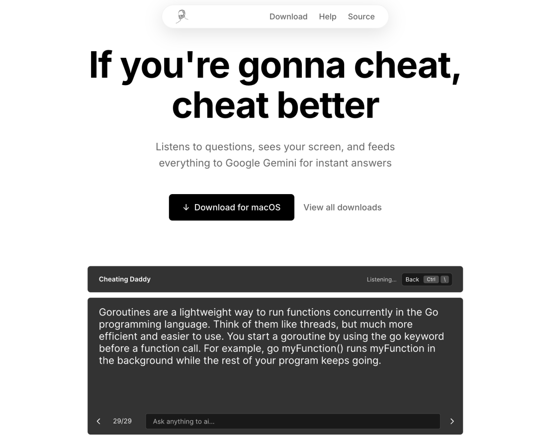 它通过使用屏幕捕获和音频分析在视频通话、面试、演示和会议期间提供实时的 AI 帮助。