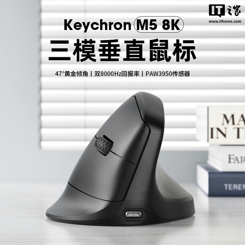 IT之家 7 月 4 日消息,Keychron M5 8K 三模垂直鼠标现已在京东开售,该鼠标采用 PAW3950 传感器,拥有双 8KHz 回报率,定价为 499 元。