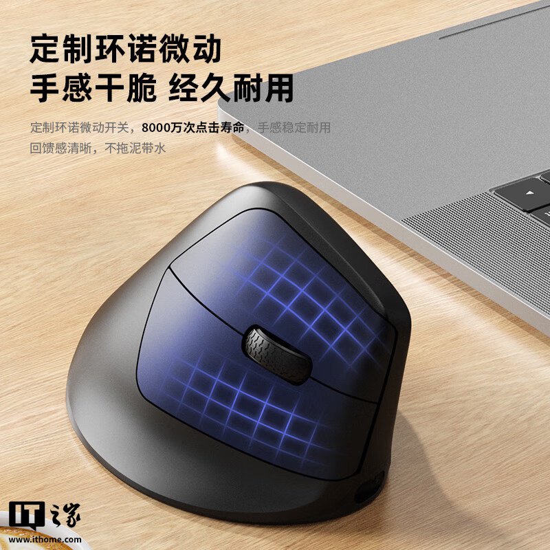 据官方介绍,这款鼠标可选黑白双色,采用人体工程学 47° 立握设计,号称可以降低手腕压力。